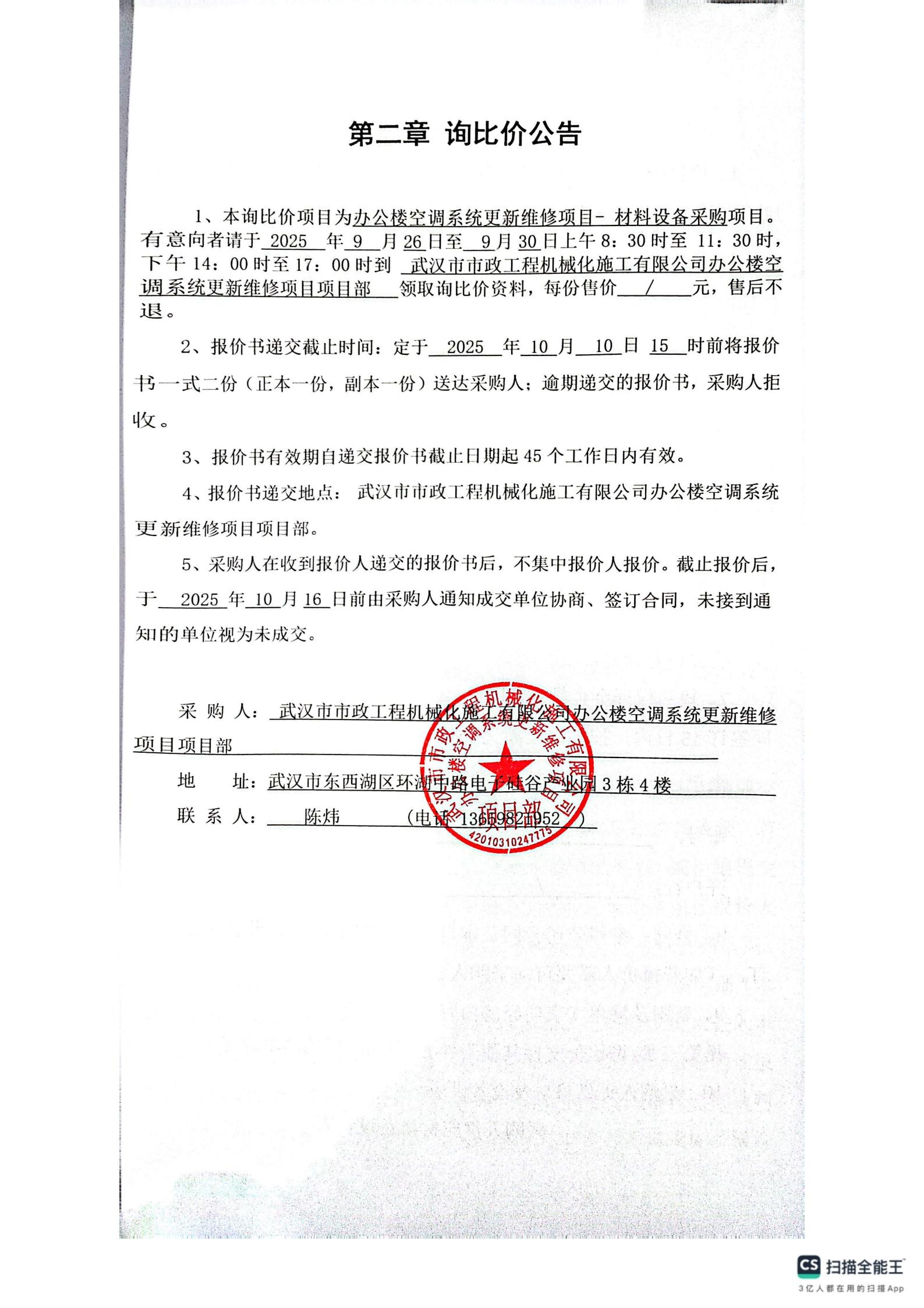 辦公樓空調(diào)系統(tǒng)更新維修項目-材料設(shè)備采購詢價公告